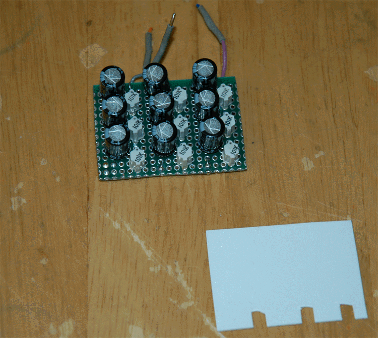 6倍圧回路の最後のダイオード先とアース側に配線し基板に取り付けます。