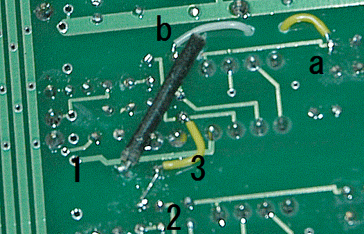 (マイク電源部、下の写真のように黄色のリード線でバイパスしています。)