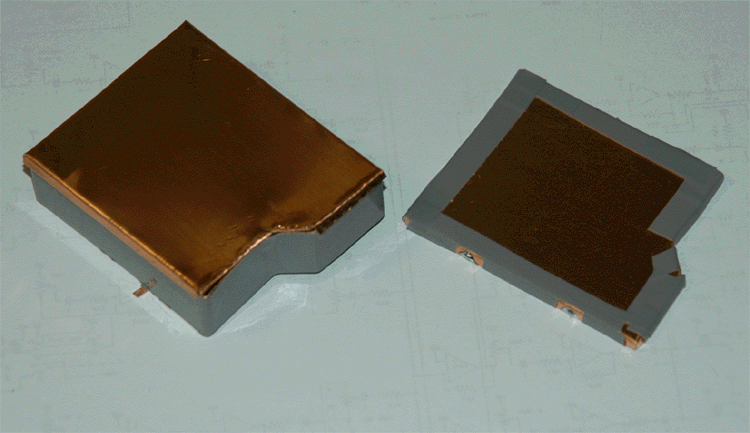 1段目シールドケースと基板裏側シールドケースです。グレーのテープは絶縁用です。